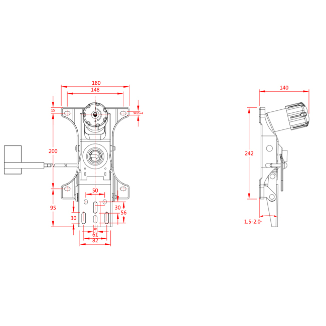 Features: • Height adjustment handle. • 1 position locking and tilt angles 0 ~17°. • Tension regulation for tilt .