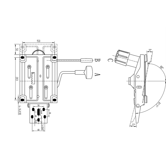 Features: • With seat board slider 50mm . • Height adjustment handle. • 3 position locking for tilt angles 0 ~17°. • Tension regulation for tilt .
