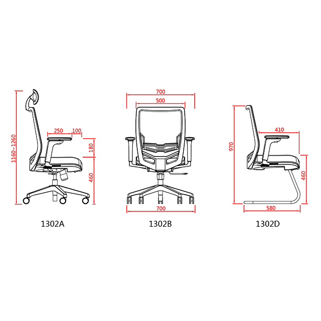 • Highback or Midback task chairs and Conference chair choice.